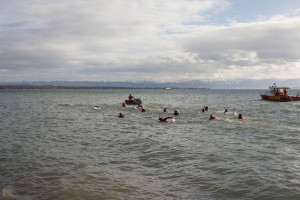 Begleitet wurden die Schwimmer und Schwimmerinnen von einem Ruderboot und Motor-Rettungsboot der DLRG.